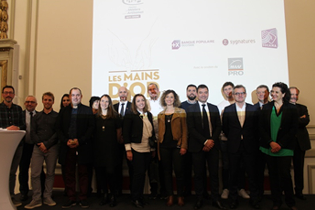 La cĂ©rĂ©monie des Mains d’Or de la Haute Garonne mettant en lumiĂšre le travail des Artisans vient de se terminer, et j’ai l’immense joie d’avoir Ă©tĂ© LaurĂ©ate dans la catĂ©gorie Reconversion Professionnelle !